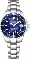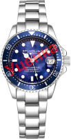 Aquadiver Depthmaster Fashion. Водонепроницаемые кварцевые наручные часы. Круглый стальной корпус с минеральным стеклом. Рифленый вращающийся безель с минутной шкалой. Перламутровый циферблат. Метки в виде штрихов и точек, 12-ти часовая метка в виде треугольника. Метки и стрелки с люминесцентным покрытием, которое светится в темноте после непродолжительной зарядки на свету. Окошко даты с увеличительным стеклом находится в положении 3 часа. Рифленая заводная головка. Надежный стальной браслет.