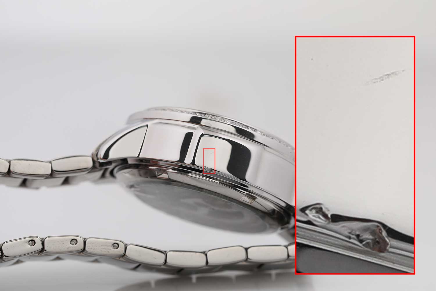 Perle. Сквозь прозрачное окошко на циферблате можно наблюдать за работой механизма часов. Накладные метки в виде точек и римских цифр. Завинчивающаяся задняя крышка со стеклом Krysterna. Рифленая заводная головка. Браслет с раскладывающейся застежкой.