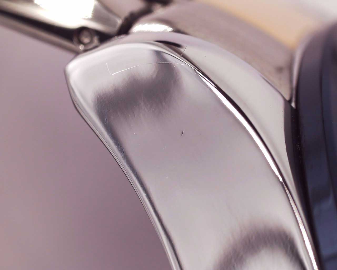 Часы-хронограф с секундомером и тахиметром Ultima. Циферблат выполнен по технологии Sunray (солнечные лучи). Метки в виде штрихов. Окошко даты находится между отметками 4 и 5 часов. Завинчивающаяся задняя крышка. Завинчивающаяся заводная головка с защитой. Браслет с раскладывающейся застежкой. Застежка с системой блокировки.