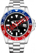 Ambassador. Циферблат выполнен по технологии Sunray (солнечные лучи). Второй часовой пояс в 24-х часовом формате времени, отображается центральной стрелкой. Шкала для второго пояса расположена на безеле. Безель вращается в одном направлении. Окошко даты с увеличительным стеклом в позиции 3 часа. Завинчивающаяся задняя крышка и заводная головка с защитой. Браслет с раскладывающейся застежкой. Застежка с системой блокировки.