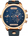 Мужские кварцевые часы Global GMT. Гильошированный циферблат с двумя отдельными циферблатами, которые позволяют отслеживать время в трех часовых поясах. 12-ти и 24-х часовой формат времени и день недели вынесены на отдельные циферблаты. Окошко даты находится в положении 3 часа. Рифленая заводная головка. Прочный кожаный ремешок с классической застежкой.