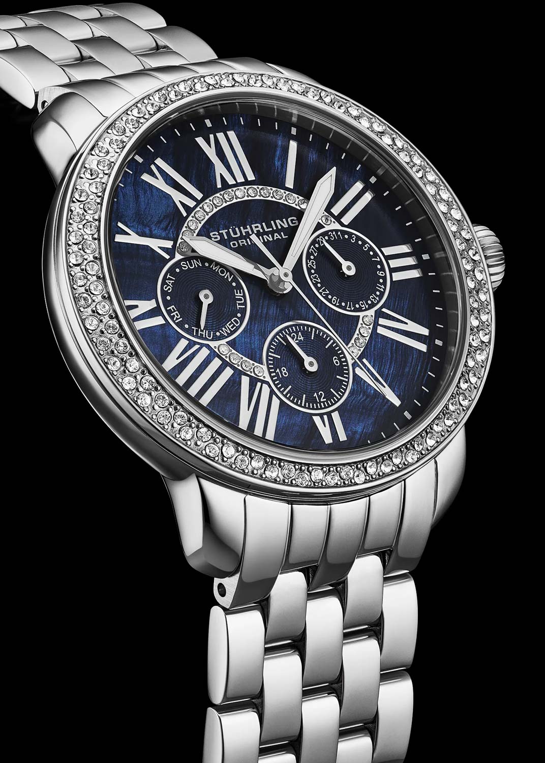 - безель и циферблат украшены кристаллами