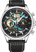 Ace Aviator. Скелетонизированные часы-хронограф с секундомером и тахиметром. Секундомер с точностью 1/20сек. Метки в виде штрихов. Заводная головка с защитой. Стальная задняя крышка. Ремешок с классической застежкой.