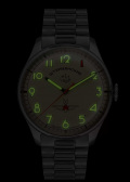 Циферблат с крупными метками в виде арабских цифр. Заостренные прямоугольные стрелки в стиле Baton. Стрелки и метки с люминесцентным покрытием SuperLuminova, которое светится в темноте после непродолжительной зарядки на свету.