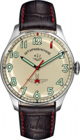 Рифленая заводная головка. Стальная задняя крышка крепится на 4-х винтах. На ней выполнена гравировка с изображением Юрия Гагарина и надписью «Первые часы в космосе». Кожаный ремешок с классической застежкой.