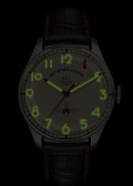 Циферблат с крупными метками в виде арабских цифр. Заостренные прямоугольные стрелки в стиле Baton. Стрелки и метки с люминесцентным покрытием SuperLuminova, которое светится в темноте после непродолжительной зарядки на свету.
