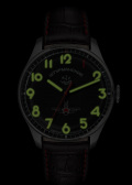 Циферблат с крупными метками в виде арабских цифр. Заостренные прямоугольные стрелки в стиле Baton. Стрелки и метки с люминесцентным покрытием SuperLuminova, которое светится в темноте после непродолжительной зарядки на свету.
