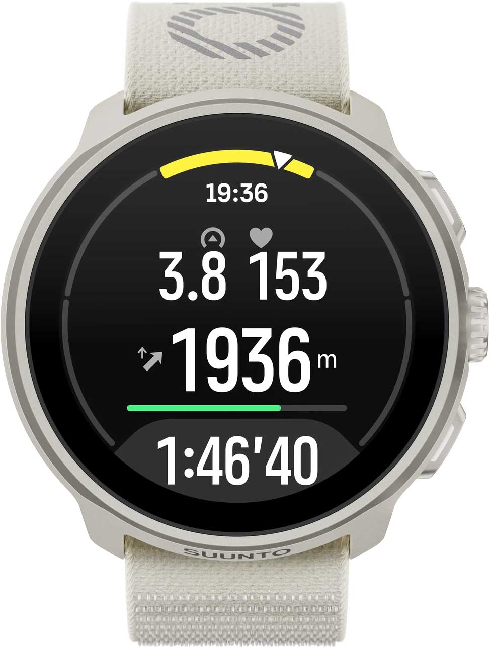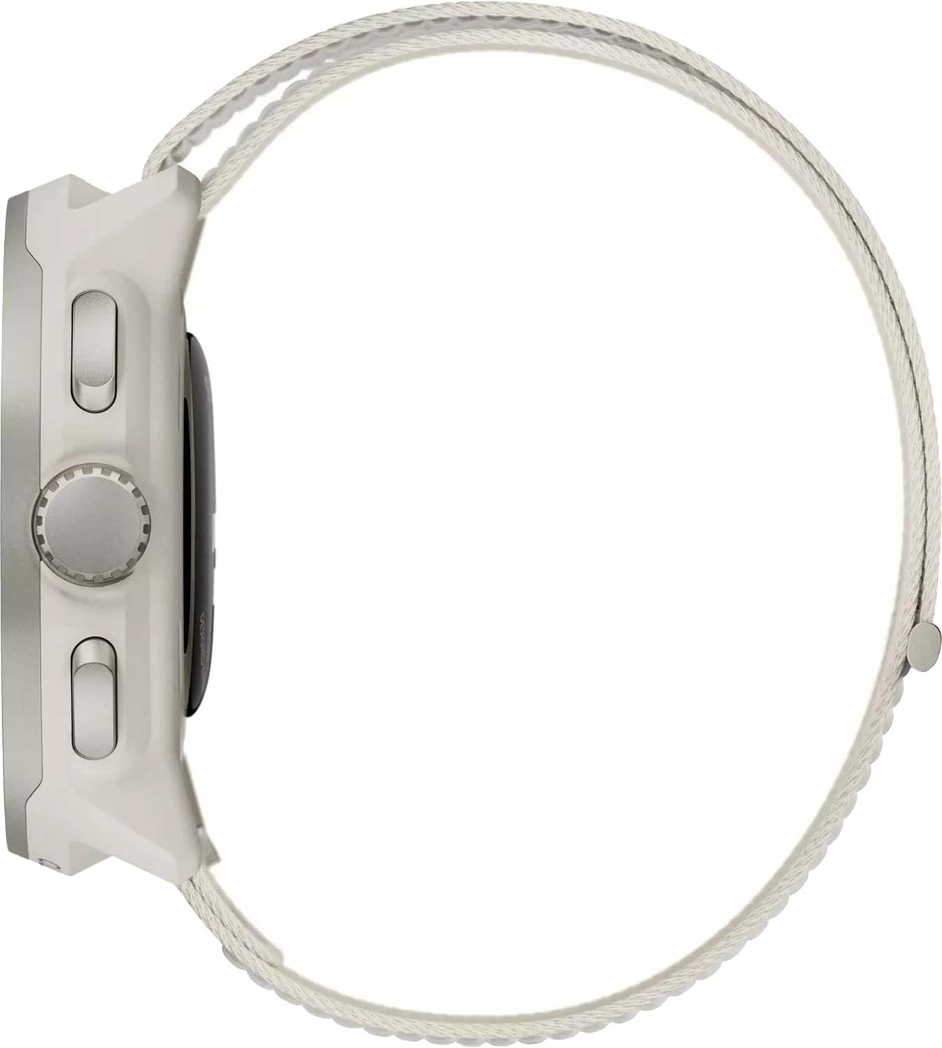 Цветной сенсорный AMOLED циферблат 1,32‘’ с разрешением 466x466. Настраиваемые экраны и подсветка. Дополнительные функции: второй часовой пояс, секундомер, SPLIT-хронограф, таймер, будильник, время восхода/захода солнца, автоматический переход на зимнее и летнее время. Датчики: барометрический альтиметр, электронный компас, термометр.