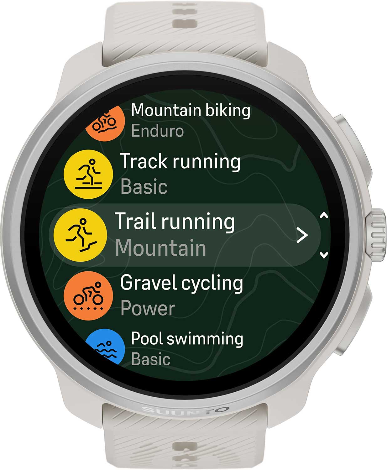 Часы оснащены собственной операционной системой Suunto. Вибро-оповещение. Блокировка циферблата во время тренировок. Цифровая переводная головка для быстрого доступа к функциям часов. Задняя крышка крепится на 4-х винтах. Встроенная память 32Гб. Ремешок с классической застежкой и системой быстрой замены.