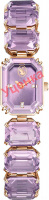 Потрясающие женские часы-браслет Millenia. Стальной восьмиугольный корпус с PVD покрытием цвета шампанского эффектно дополнен кристальным безелем. Под сапфировым стеклом открывается фиолетовый циферблат, выполненный по технологии Sunray (солнечные лучи), с логотипом Swarovski в виде лебедя в положении 12 часов и метками в виде точек из кристаллов в положениях 3,6 и 9 часов. Мечевидные стрелки в стиле Sword. Секундная стрелка отсутствует. Рифленая заводная головка. Стальной браслет с PVD покрытием цвета шампанского и застежкой-бабочкой декорирован рядом крупных фиолетовых кристаллов Swarovski огранки октагон.