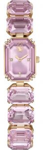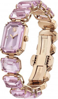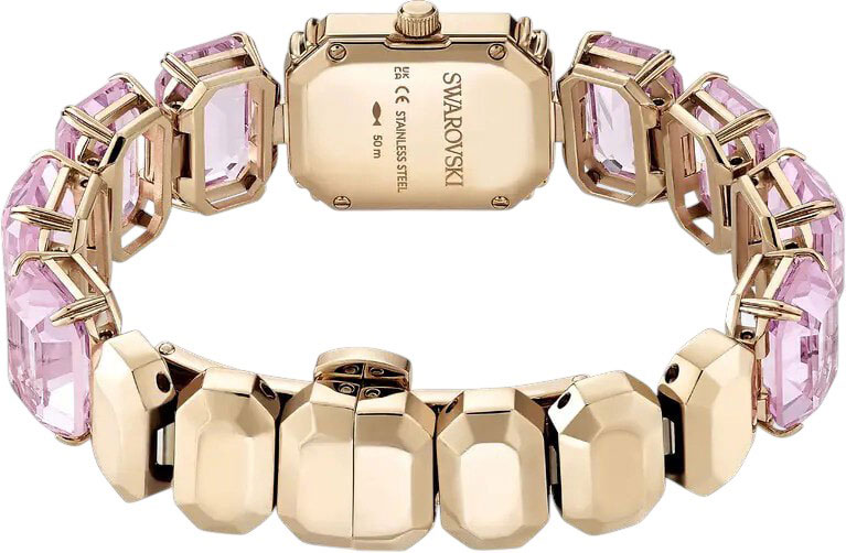 Рифленая заводная головка. Стальной браслет с застежкой-бабочкой декорирован рядом крупных розовых кристаллов Swarovski огранки октагон.
