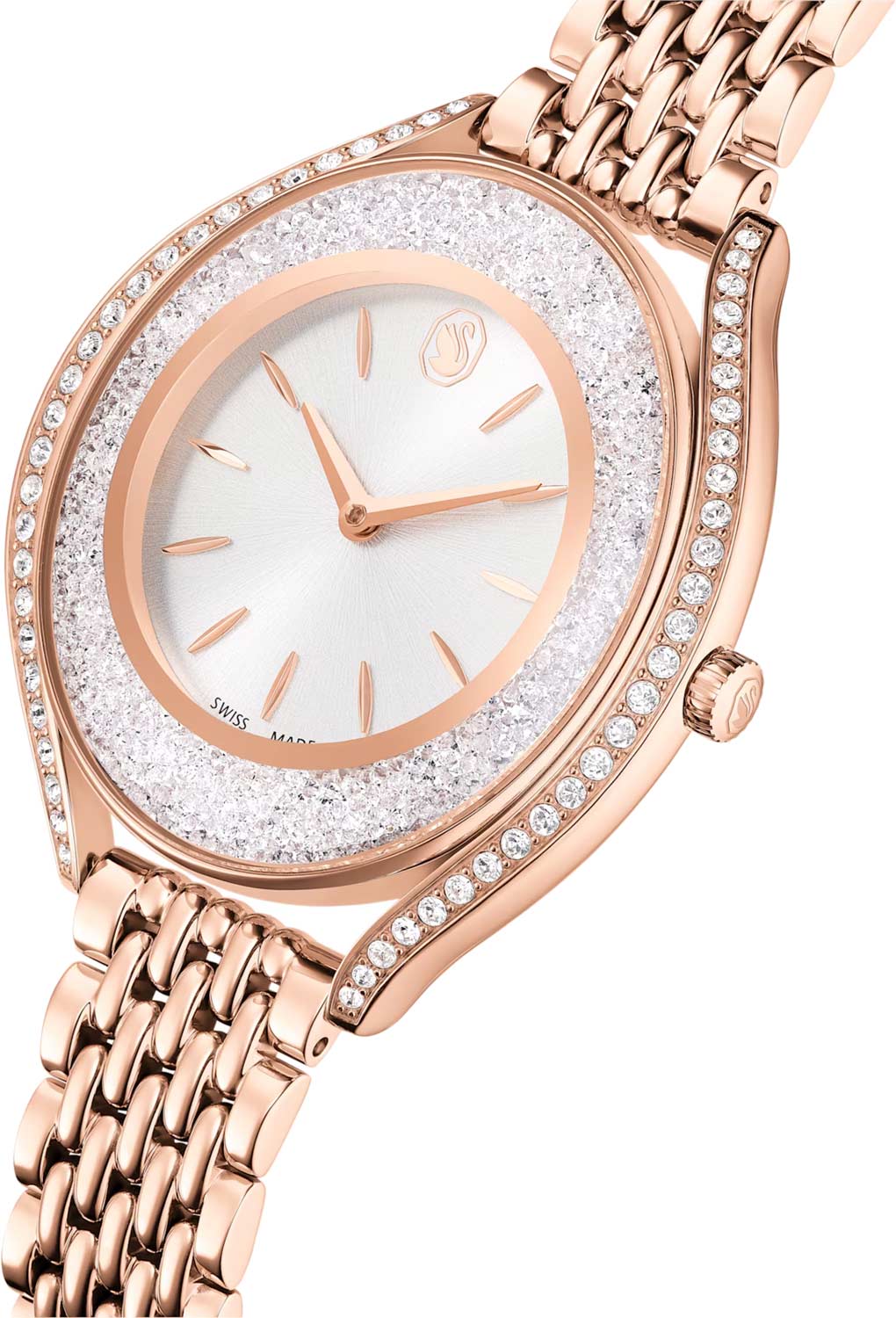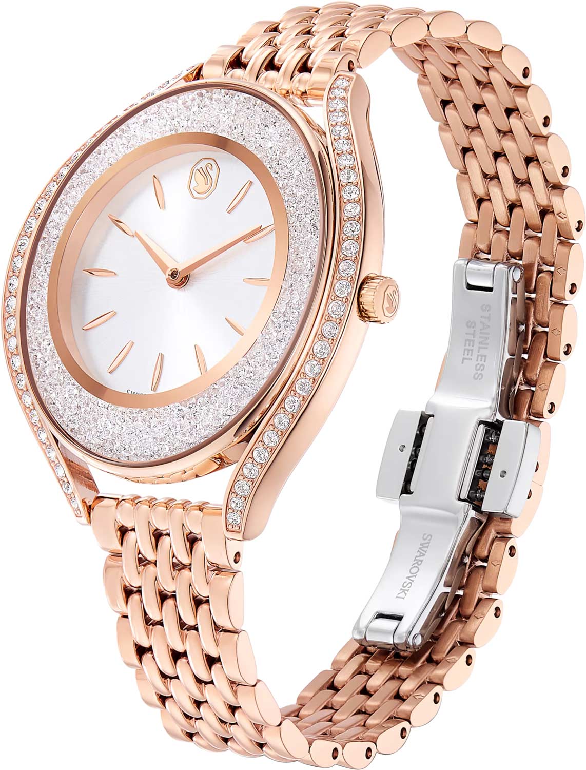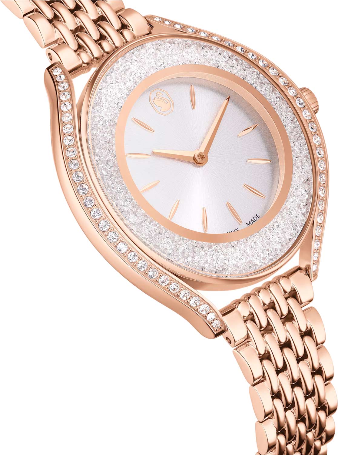 - корпус и циферблат украшены кристаллами Swarovski