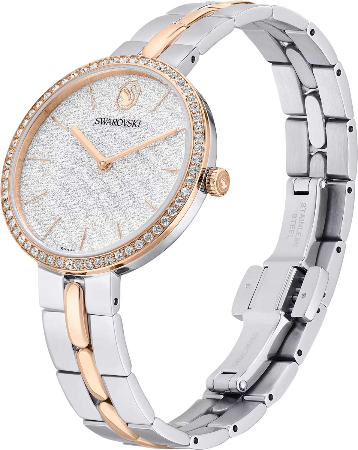 - корпус и циферблат украшены кристаллами Swarovski