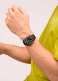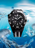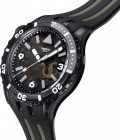 Метки и стрелки с люминесцентным покрытием, которое светится в темноте после непродолжительной зарядки на свету. Заводная головка находится слева в положении 10 часов. Матовый силиконовый ремешок с классической застежкой.