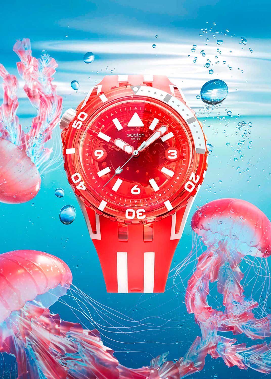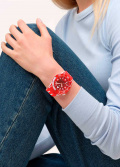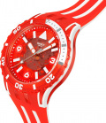 Метки и стрелки с люминесцентным покрытием, которое светится в темноте после непродолжительной зарядки на свету. Заводная головка находится слева в положении 10 часов. Матовый силиконовый ремешок с классической застежкой.