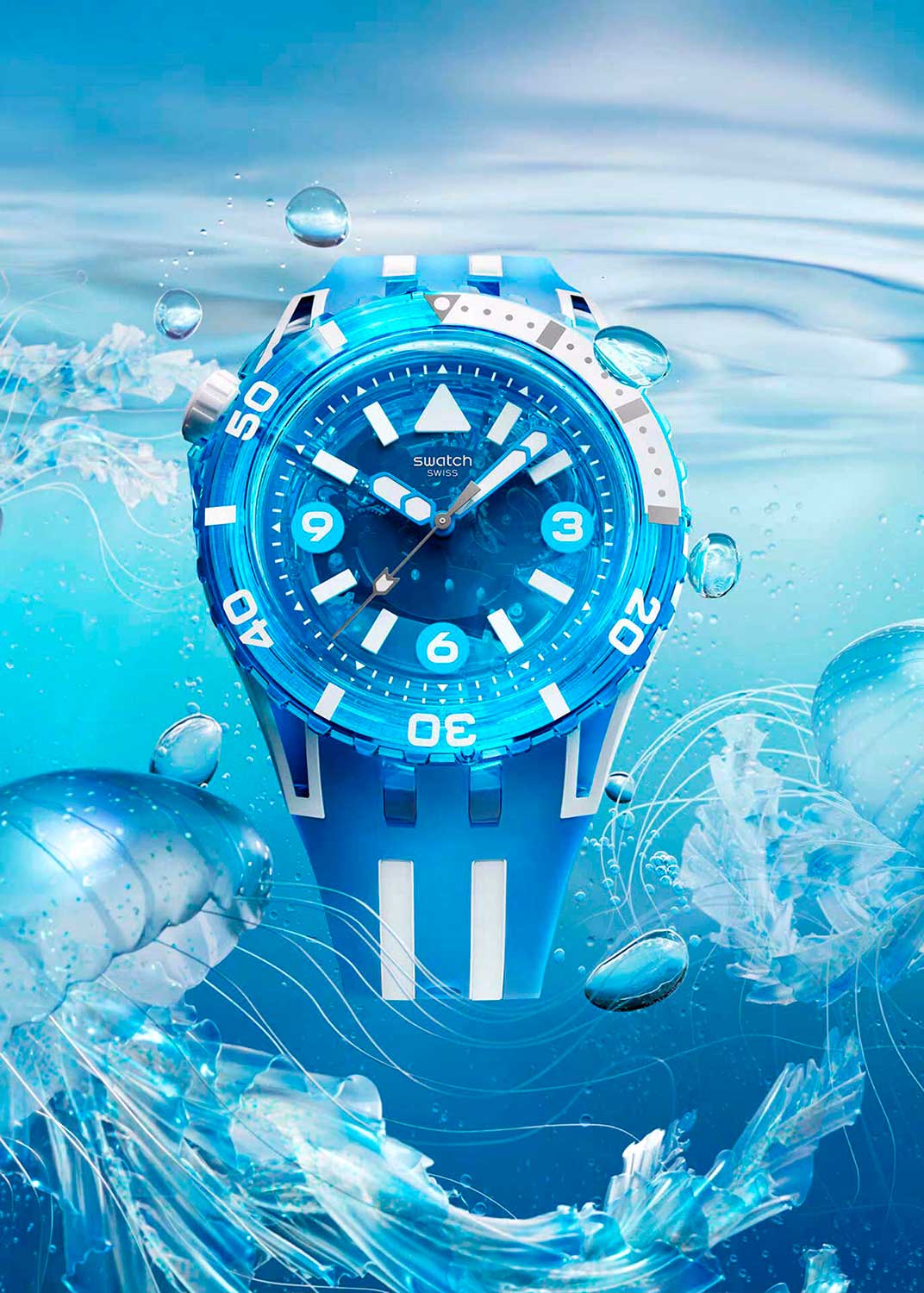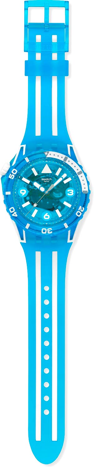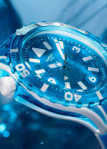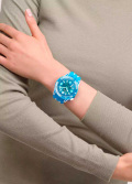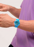 Метки и стрелки с люминесцентным покрытием, которое светится в темноте после непродолжительной зарядки на свету. Заводная головка находится слева в положении 10 часов. Матовый силиконовый ремешок с классической застежкой.
