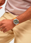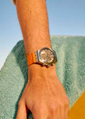 Стрелки и метки с люминесцентным покрытием, которое светится в темноте после непродолжительной зарядки на свету. Стекло из многослойного акрила. Заводная головка в форме болта. Текстильный ремешок с классической стальной застежкой.