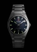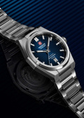 Стрелки и метки с люминесцентным покрытием, которое светится в темноте после непродолжительной зарядки на свету. Завинчивающаяся рифленая заводная головка украшена логотипом. Прозрачная задняя крышка. Стальной браслет с раскладывающейся застежкой.