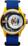 Яркие и креативные мужские часы The Cable Z Круглый стальной корпус с желтым нейлоновым покрытием. Циферблат часов с гордостью демонстрирует достижения технического прогресса - батарейка, медная катушка, разноцветные провода, проводящие ток. При создании дизайна используется более 50 небольших элементов и деталей. Электронный модуль собственного производства - питает механизм часов и светодиодную подсветку. Кнопка в положении 2 часа активирует светодиодную белую подсветку. Метки в виде штрихов. Часы защищены закаленным минеральным стеклом K1. Цельная задняя крышка украшена ироничными инструкциями, стилизованными под предупреждения о высоком напряжении. Удобный нейлоновый ремешок NATO с классической застежкой.