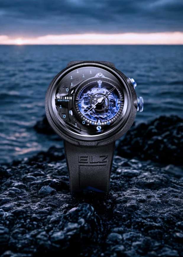 Запатентованный модуль собственного производства в сочетании с механическим механизмом. Кнопка в положении 2 часа активирует светодиодную синюю подсветку. Циферблат с метками в виде штрихов. Ремешок с классической застежкой.
