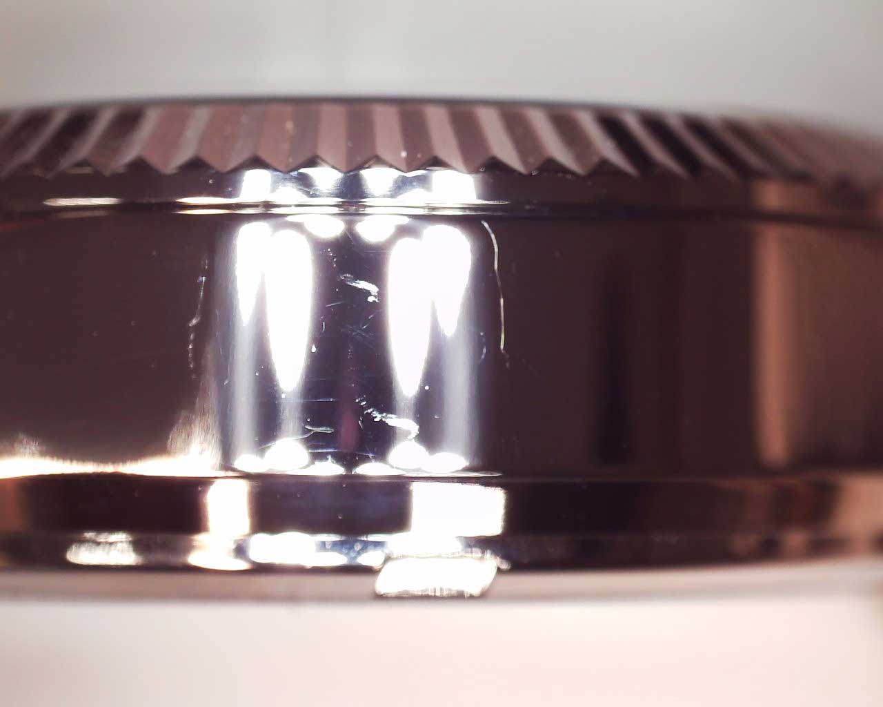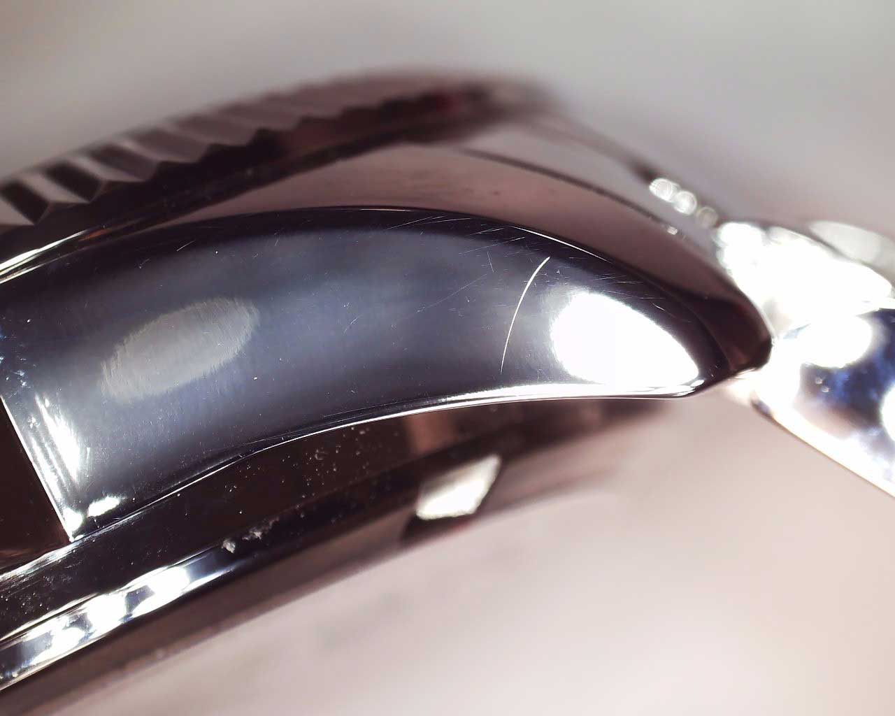Рифленая заводная головка с защитой. Завинчивающаяся задняя крышка с гравировкой. Браслет с застежкой-бабочкой.