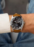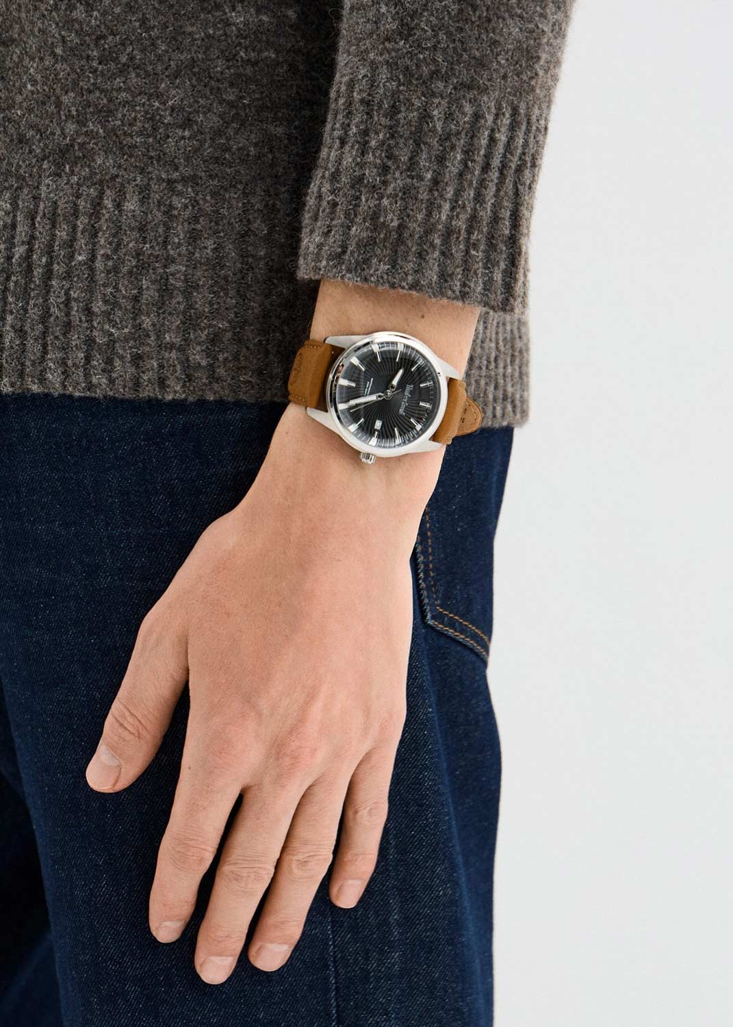 Рифленая заводная головка с логотипом бренда. Завинчивающаяся задняя крышка с гравировкой. Ремешок из натуральной премиум кожи с классической застежкой. Производитель оставляет за собой право вносить изменения во внешний вид ремешка.