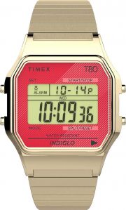 T80. Унисекс. Электронный SPLIT-хронограф с секундомером. Секундомер точностью 1/100сек. Циферблат с метками в виде арабских цифр и фирменной подсветкой Indiglo. Функция ежедневного будильника. Отображение числа, дня недели и месяца. Стальная задняя крышка. Удобный стальной растягивающийся браслет без застежки.