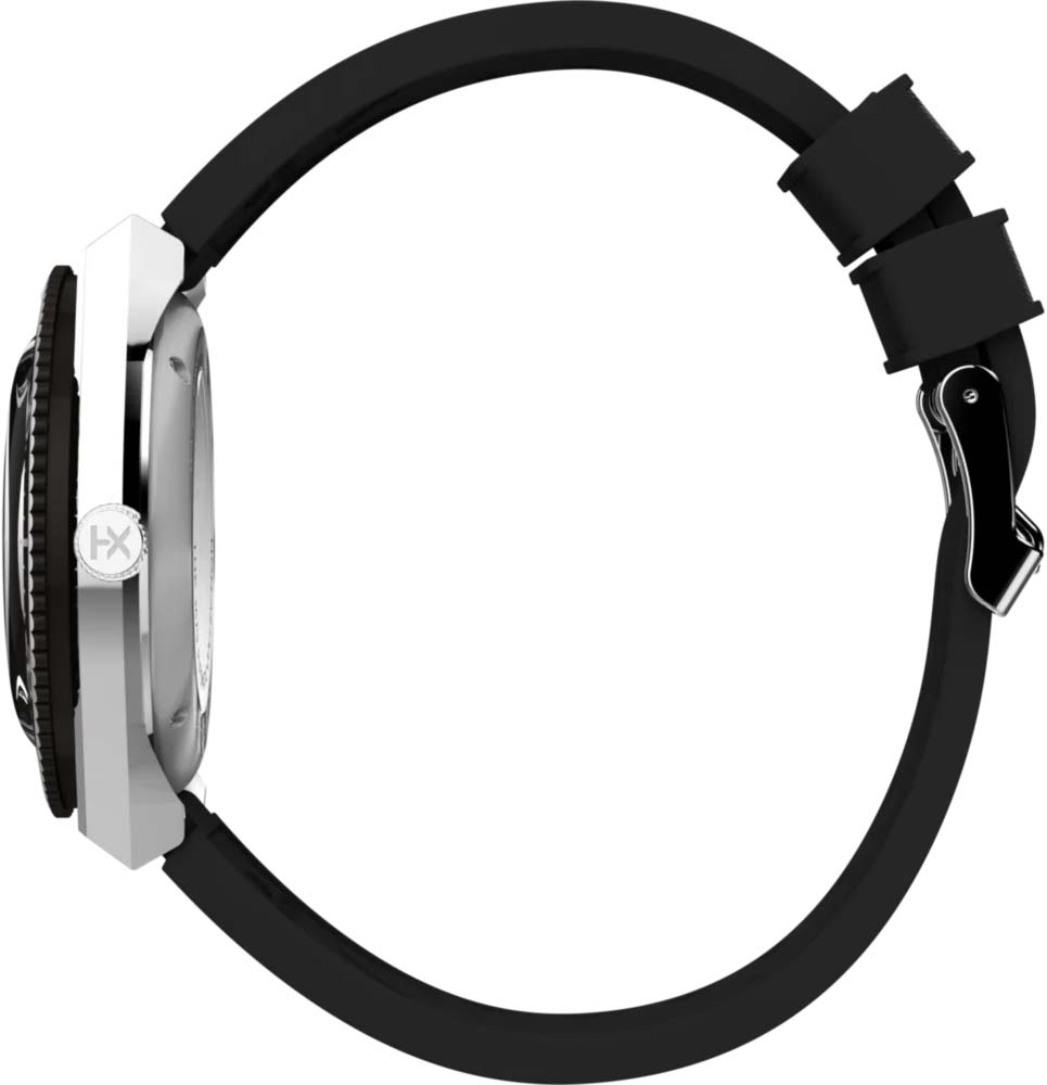 Рифленая заводная головка. Задняя крышка с прозрачным стеклом крепится на 4-х винтах. Удобный ремешок из полимерного материала с классической застежкой и системой быстрой замены.