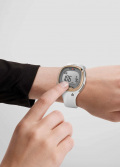 Стальная задняя крышка крепится на 4-х винтах. Силиконовый ремешок с классической застежкой.
