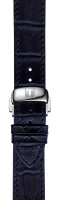 Круглый стальной корпус. Синий циферблат с накладными метками в виде римских цифр. Листовидные стрелки в стиле Feuille. Окошко даты находится в положении 3 часа. Рифленая заводная головка.