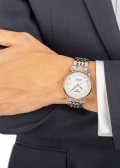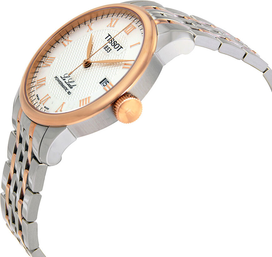 Круглый стальной корпус. Серебристый циферблат с метками в виде римских цифр. Листовидные стрелки в стиле Feuille. Окошко даты находится в положении 3 часа.