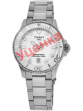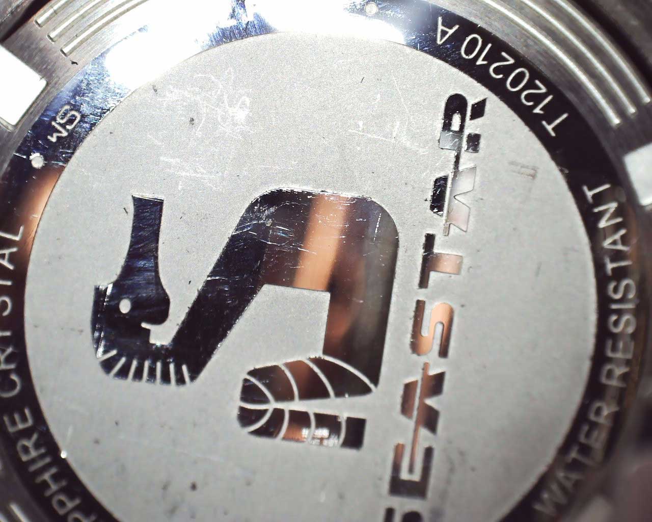 T-Sport Seastar 1000 36mm. Унисекс наручные часы. В механизме 3 камня. Круглый стальной корпус. Рифленый вращающийся в одном направлении безель. Мечевидные стрелки в стиле Sword. Метки в виде штрихов и точек, 12-ти часовая метка в виде треугольника. Метки и стрелки с люминесцентным покрытием, которое светится в темноте после непродолжительной зарядки на свету. Окошко даты находится в положении 6 часов. Завинчивающаяся рифленая заводная головка. Завинчивающаяся задняя крышка с гравировкой. Надежный стальной браслет с раскладывающейся застежкой и системой быстрой замены. Застежка с системой блокировки.