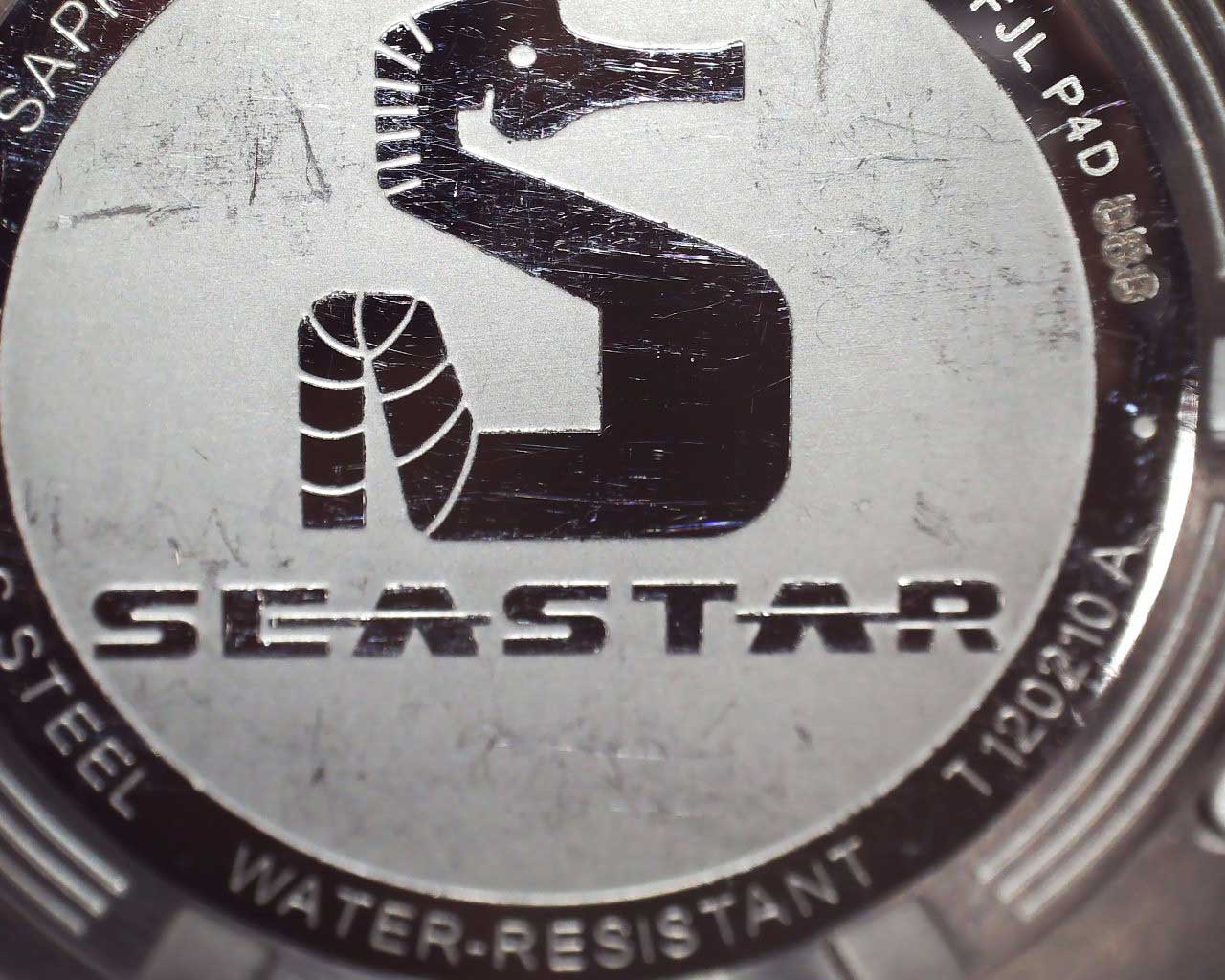 T-Sport Seastar 1000 36mm. Унисекс часы. В механизме 3 камня. Круглый стальной корпус. Рифленый вращающийся в одном направлении безель. Циферблат выполнен по технологии Sunray (солнечные лучи). Мечевидные стрелки в стиле Sword. Метки в виде штрихов и точек, 12-ти часовая метка в виде треугольника. Метки и стрелки с люминесцентным покрытием, которое светится в темноте после непродолжительной зарядки на свету. Окошко даты находится в положении 6 часов. Завинчивающаяся рифленая заводная головка. Завинчивающаяся задняя крышка с гравировкой. Надежный стальной браслет с раскладывающейся застежкой и системой быстрой замены. Застежка с системой блокировки.