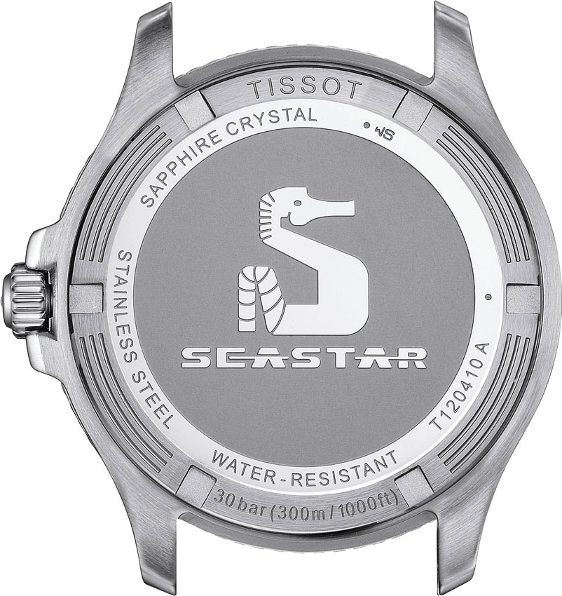 Завинчивающаяся рифленая заводная головка с защитой. Завинчивающаяся задняя крышка с гравировкой. Стальной браслет с раскладывающейся застежкой и системой быстрой замены.