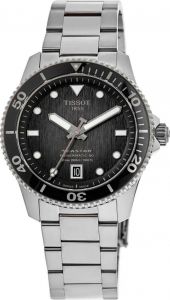 Мужские наручные часы Seastar 1000 Powermatic 80. В механизме 23 камня, частота 21600 полуколебаний в час. Запас хода 80 часов. Круглый стальной корпус. Широкие мечевидные стрелки в стиле Sword. Метки в виде штрихов и точек, 12-ти часовая метка в виде треугольника. Метки и стрелки с люминесцентным покрытием, которое светится в темноте после непродолжительной зарядки на свету. Окошко даты находится в положении 6 часов. Завинчивающаяся рифленая заводная головка. Завинчивающаяся прозрачная задняя крышка. Надежный стальной браслет с раскладывающейся застежкой.