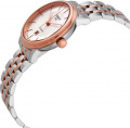 Круглый стальной корпус. Серебристый циферблат с метками в виде штрихов. Узкие листовидные стрелки серебристого цвета в стиле Feuille. Окошко даты находится в положении 6 часов.