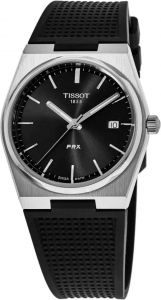 Кварцевые наручные часы PRX. В механизме 3 камня. Функция индикации заряда (EOL). Стальной корпус c сатинированной поверхностью. Метки в виде штрихов. Метки и стрелки с люминесцентным покрытием, которое светится в темноте после непродолжительной зарядки на свету. Окошко даты находится в положении 3 часа. Рифленая заводная головка. Удобный силиконовый ремешок с классической застежкой и системой быстрой замены.