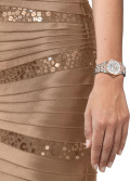 Круглый стальной корпус. Серебристый циферблат с метками в виде римских цифр и штрихов. Заостренные стрелки в стиле Alpha. Окошко даты находится в положении 6 часов.