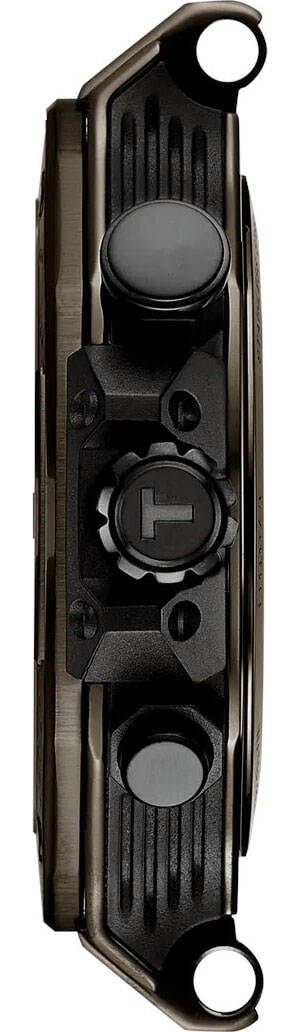 Стальной корпус с зеленым PVD покрытием. Метки в виде штрихов. Метки и стрелки с люминесцентным покрытием SuperLuminova, которое светится в темноте после непродолжительной зарядки на свету. Окошко даты находится между часовыми отметками 4 и 5. Рифленая заводная головка с защитой.