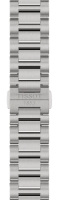 Рифленая заводная головка. Стальной браслет с раскладывающейся застежкой и системой быстрой замены.