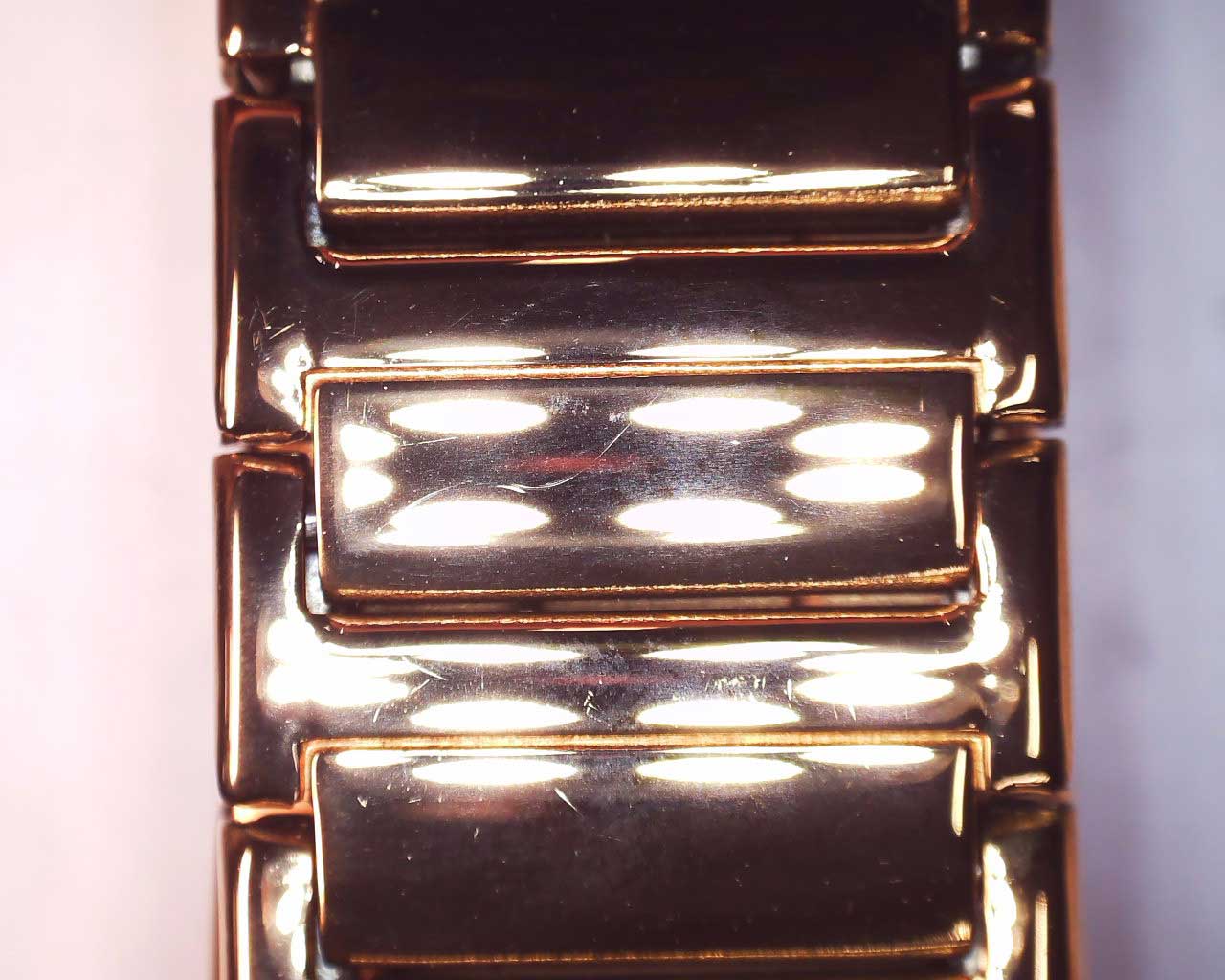 Eve. 12-ти и 24-х часовой формат времени. Циферблат выполнен по технологии Sunray (солнечные лучи). Метки в виде штрихов. Время в 24-х часовом формате, дата и день недели вынесены на отдельные циферблаты. Рифленая заводная головка с защитой. Круглый корпус. Браслет с раскладывающейся застежкой. Кнопки около заводной головки неподвижны и выполняют декоративную функцию.