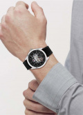 Завинчивающаяся задняя крышка. Рифленая заводная головка. Полиуретановый ремешок с классической застежкой.