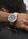 12-ти и 24-х часовой формат времени вынесен на отдельный циферблат. Завинчивающаяся рифленая заводная головка с системой блокировки расположена слева, что обеспечивает комфортное ношение на правой руке. Стальная задняя крышка с выгравированным изображением подводной мины крепится на 7-и винтах. Надежный стальной браслет с раскладывающейся застежкой.