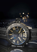 12-ти и 24-х часовой формат времени вынесен на отдельный циферблат. Завинчивающаяся рифленая заводная головка с системой блокировки расположена слева, что обеспечивает комфортное ношение на правой руке. Стальная задняя крышка с выгравированным изображением подводной мины крепится на 7-и винтах. Ремешок из сверхпрочной вулканизированной резины с классической застежкой.