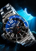 12-ти и 24-х часовой формат времени вынесен на отдельный циферблат. Завинчивающаяся рифленая заводная головка с системой блокировки расположена слева, что обеспечивает комфортное ношение на правой руке. Стальная задняя крышка с выгравированным изображением подводной мины крепится на 7-и винтах. Надежный стальной браслет с раскладывающейся застежкой.
