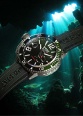 12-ти и 24-х часовой формат времени вынесен на отдельный циферблат. Завинчивающаяся рифленая заводная головка с системой блокировки расположена слева, что обеспечивает комфортное ношение на правой руке. Стальная задняя крышка с выгравированным изображением подводной мины крепится на 7-и винтах. Ремешок из сверхпрочной вулканизированной резины с классической застежкой.