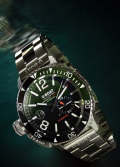 12-ти и 24-х часовой формат времени вынесен на отдельный циферблат. Завинчивающаяся рифленая заводная головка с системой блокировки расположена слева, что обеспечивает комфортное ношение на правой руке. Стальная задняя крышка с выгравированным изображением подводной мины крепится на 7-и винтах. Надежный стальной браслет с раскладывающейся застежкой.