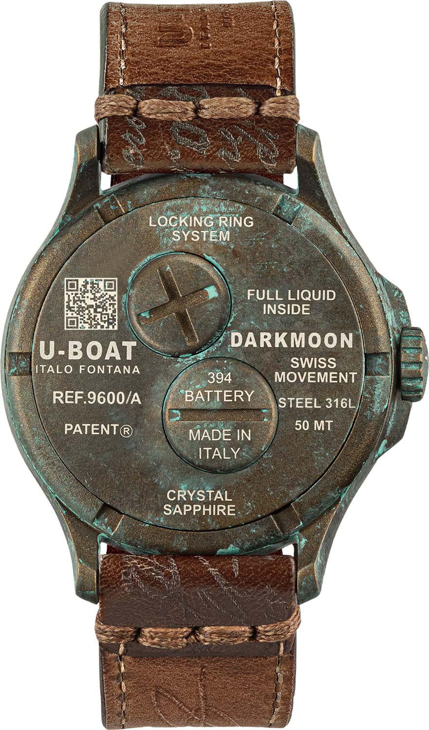 Циферблат с фактурой состаренной бронзы и метками в виде штрихов, арабских цифр 4, 8 и английской буквы U на отметке 12 часов. Стрелки с люминесцентным покрытием SuperLuminova, которое светится в темноте после непродолжительной зарядки на свету. Рифленая завинчивающаяся заводная головка с защитой расположена слева, что обеспечивает комфортное ношение на правой руке. Уникальная система блокировки задней крышки с быстрой заменой батарейки. Кожаный ремешок со швами из вощеного хлопка оснащен классической застежкой.