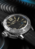 12-ти и 24-х часовой формат времени вынесен на отдельный циферблат. Завинчивающаяся рифленая заводная головка с системой блокировки расположена слева, что обеспечивает комфортное ношение на правой руке. Задняя крышка с выгравированным изображением подводной мины. Ремешок из сверхпрочной вулканизированной резины с классической застежкой.