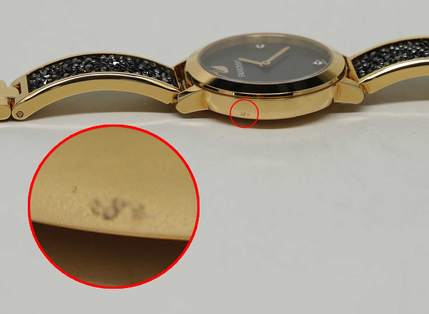 - циферблат и браслет украшены кристаллами Swarovski